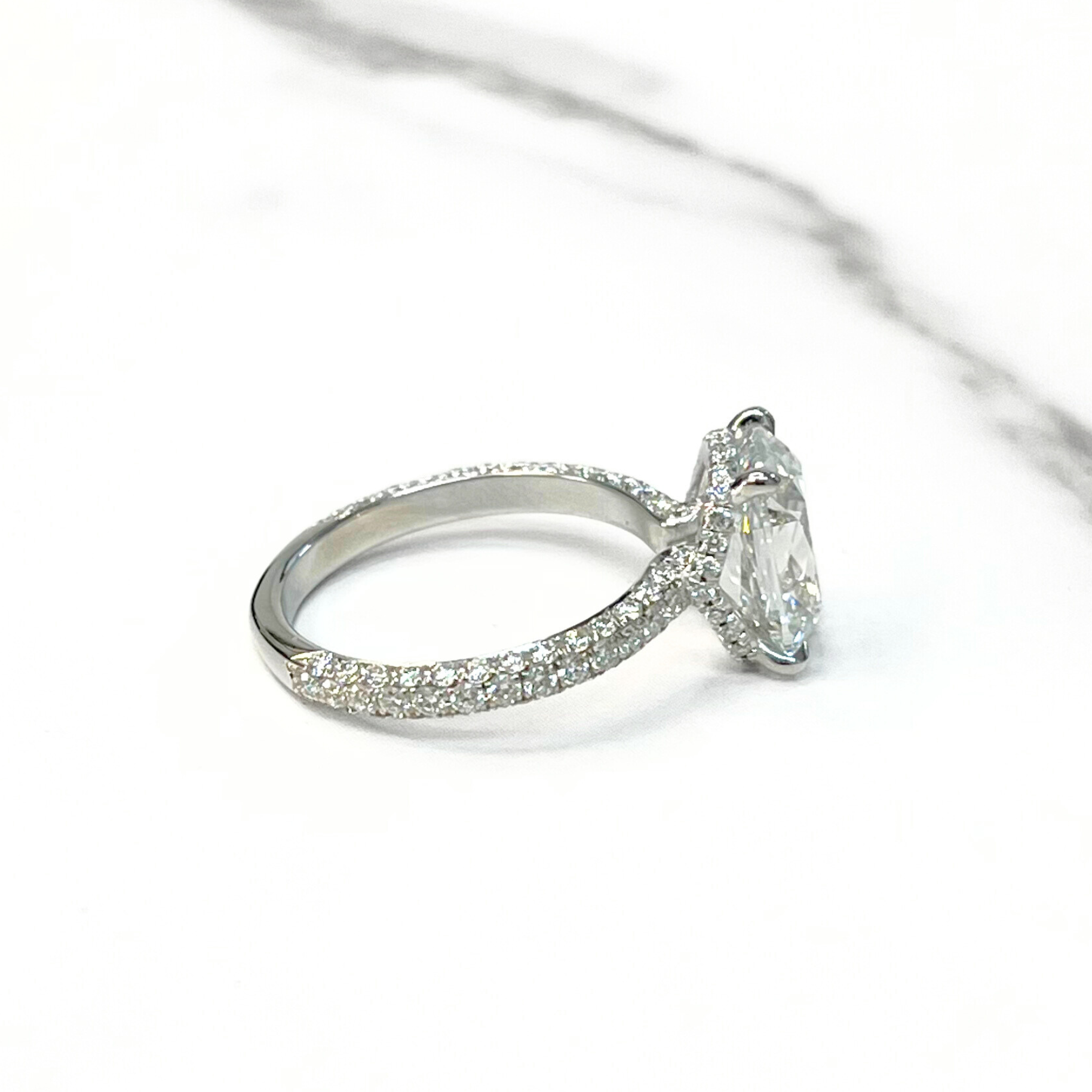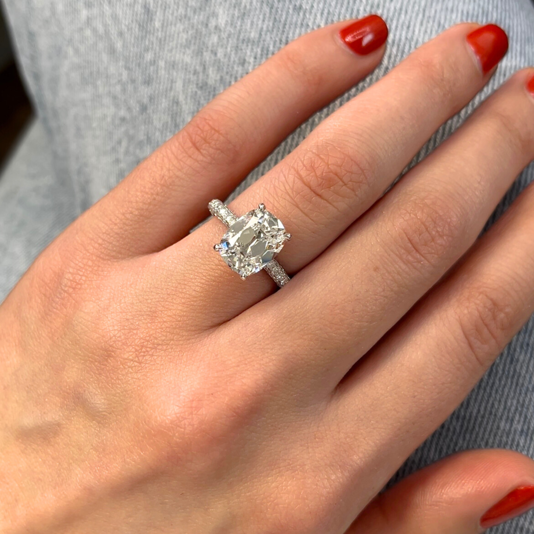 - Shown with a 3.75ct antique elongated cushion cut diamond