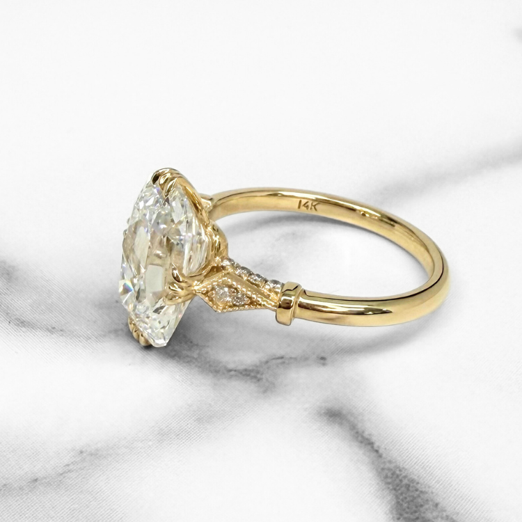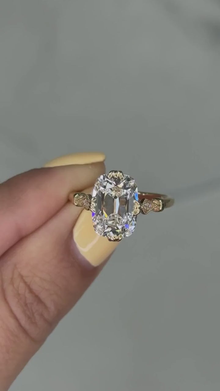 - Shown with a 4ct antique elongated cushion cut diamond